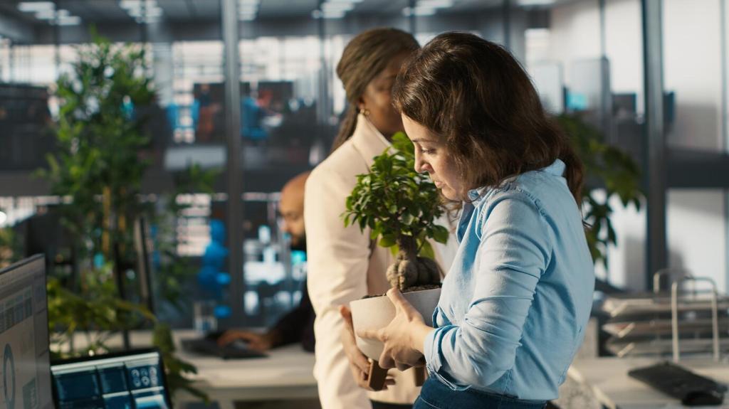 Positioniere Grün so, dass du den Blick bewusst vom Bildschirm lösen kannst. Kurze Mikropausen am Blattwerk entspannen Augen und Kopf, ohne den Fokus zu verlieren. Teste eine Woche lang und berichte, wie sich dein Arbeitsrhythmus verändert hat.